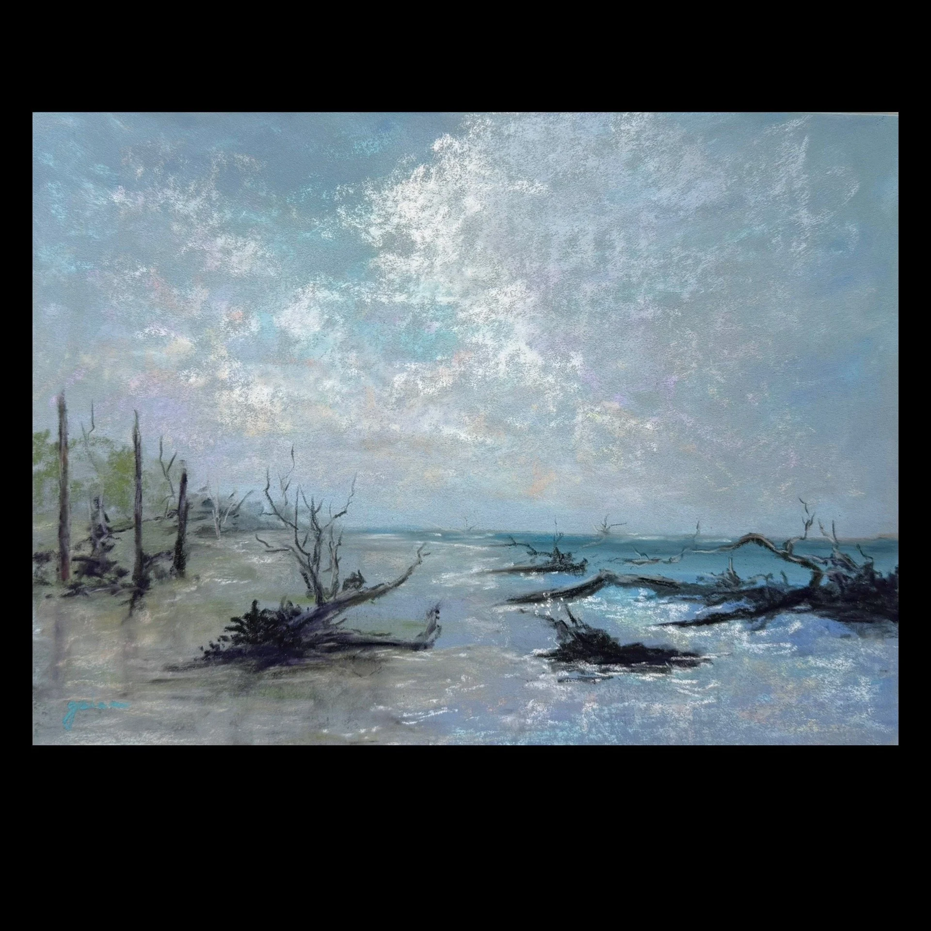 Bask in the pearlescent glow of this mixed media painting. Created using mica stains and acrylic paint on mixed media paper. Measures 9” x 12” and is unframed. Can fit easily in any standard frame. See how I painted this on my Instagram account: http://instagram.com/gsianART