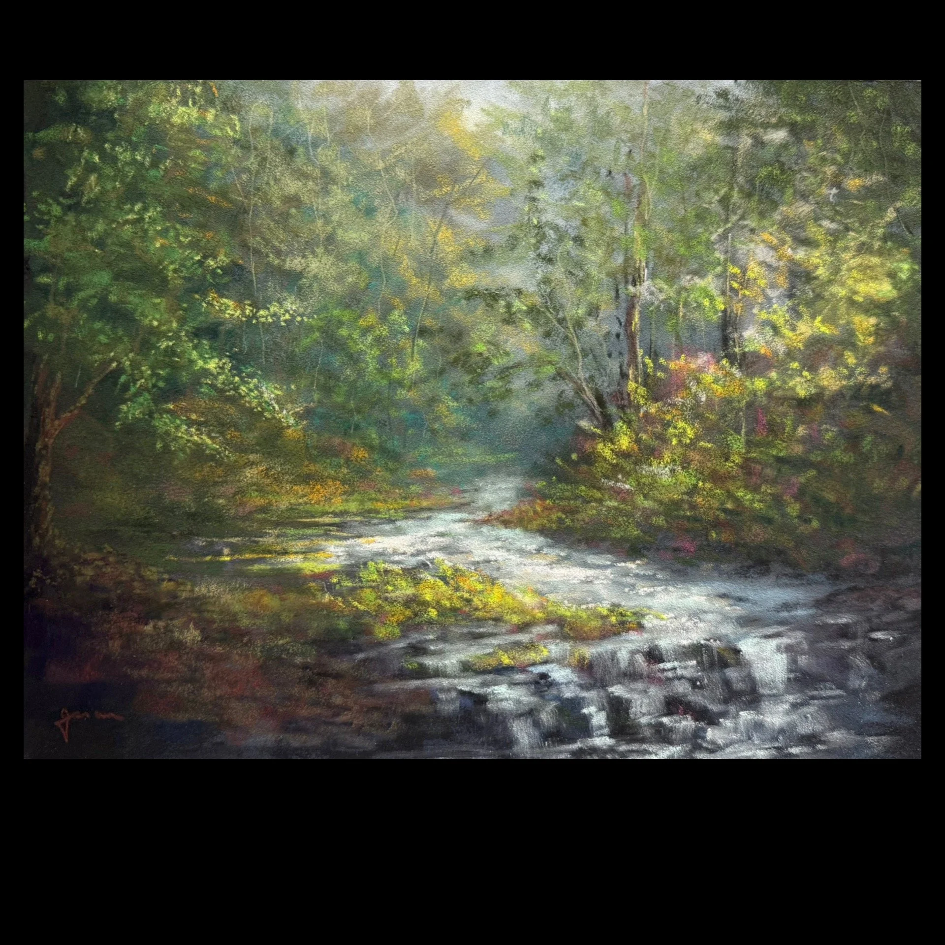 Inspired by the beautiful Japanese Gardens at the Birmingham Botanical Gardens. Created with layers of soft pastel on Canson Velvet archival surface. Artwork measures 9” x 12” in an 11” x 14” antique gold frame, ready to hang. Soft pastels are made of dry pigment and can transfer and be moved when touched. Extra care must be made when handling the art work. See how I painted this on my Instagram account: http://instagram.com/gsianART
